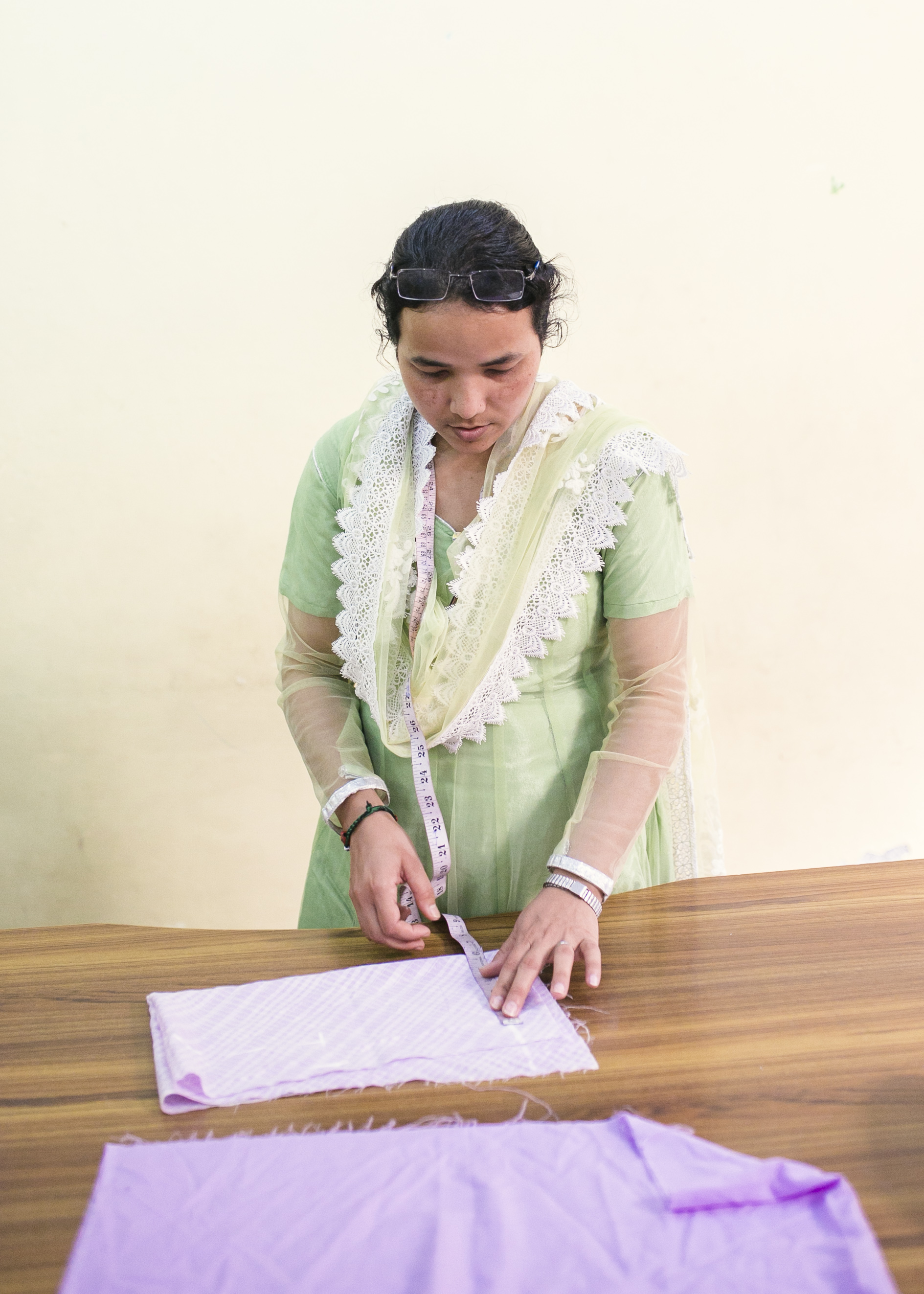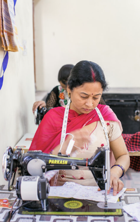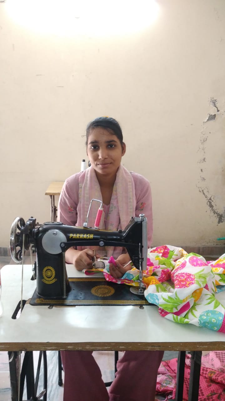Geeta, driven by family needs, completed a tailoring program in 2022, has now become a trainer, sharing her expertise and inspiring other women. After excelling in the program, she joined the team, passionate about empowering the next generation of trainees and helping them achieve their goals.