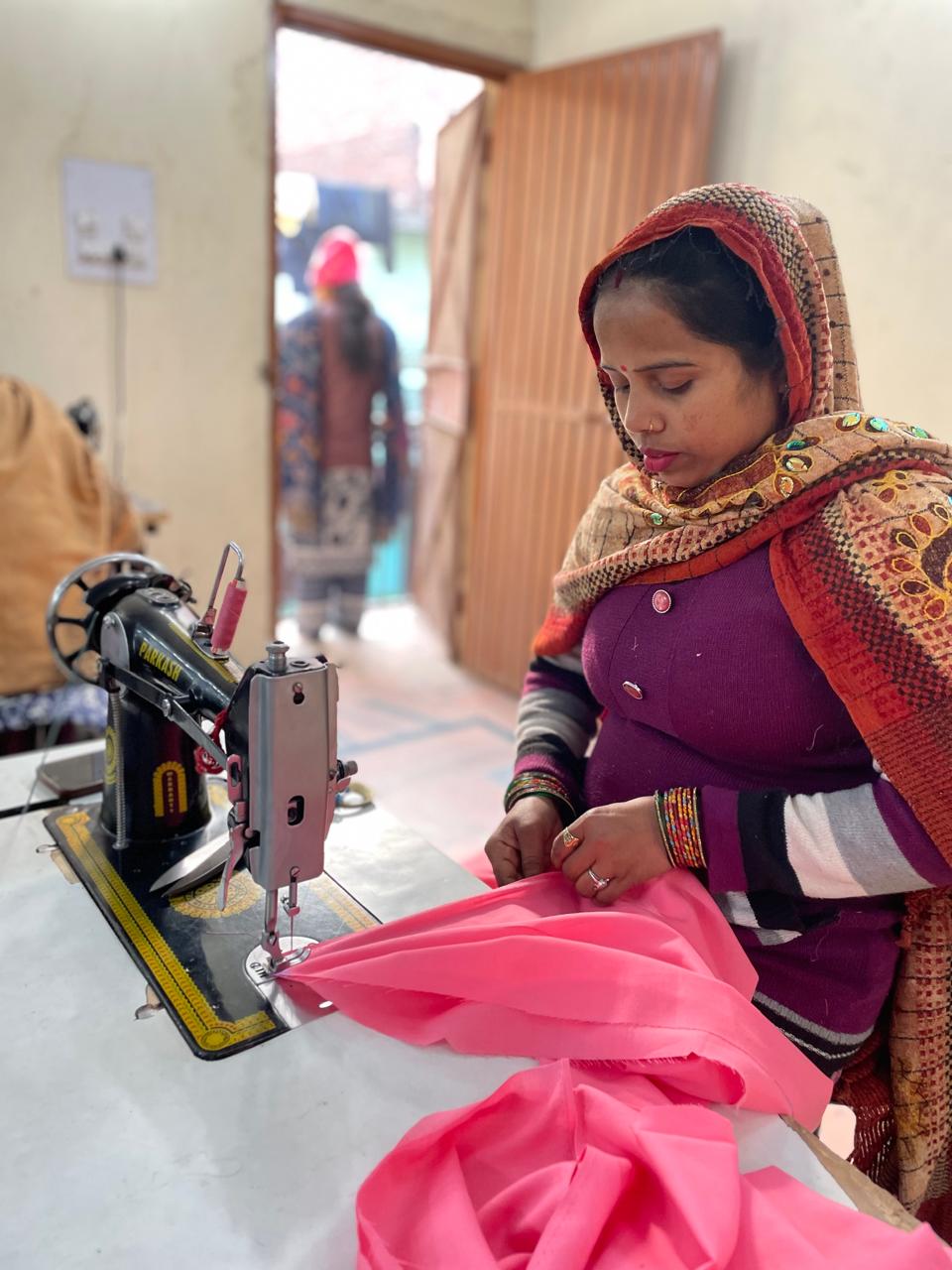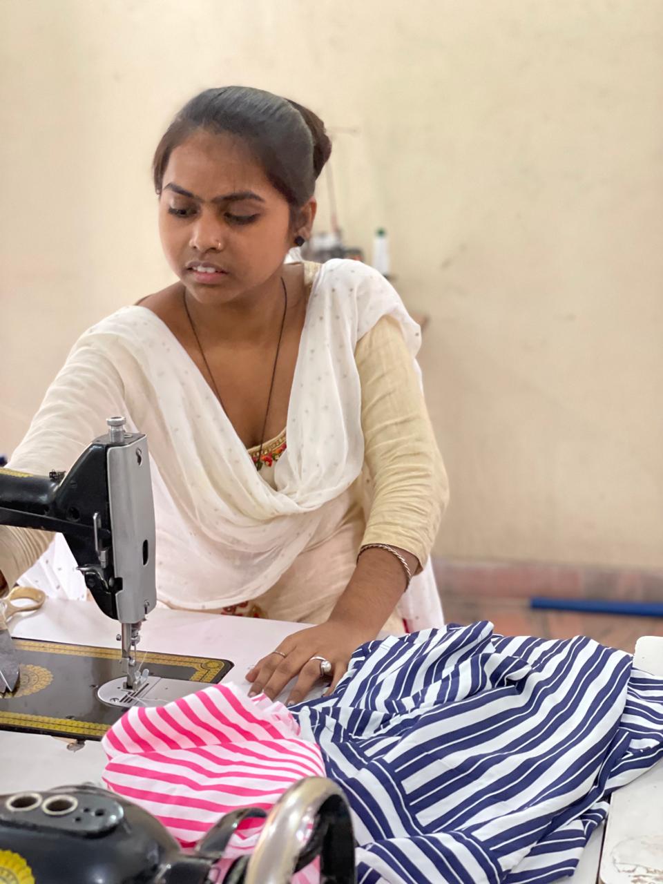 Geeta, driven by family needs, completed a tailoring program in 2022, has now become a trainer, sharing her expertise and inspiring other women. After excelling in the program, she joined the team, passionate about empowering the next generation of trainees and helping them achieve their goals.